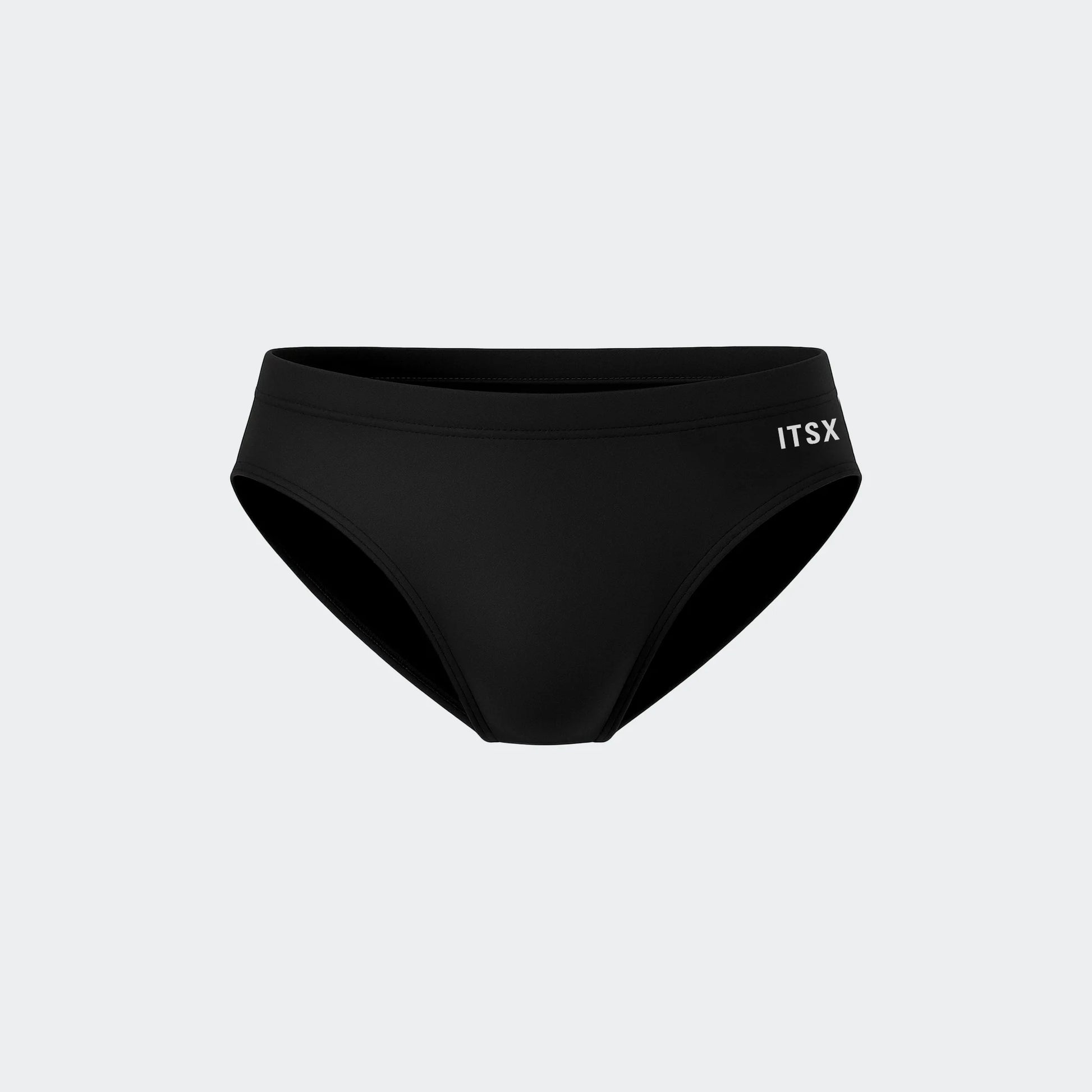 The Black Low-Rise Sporty Swim Brief from ITSX features an 8 cm side seam and a low-rise waist for a sleek, athletic fit. It offers slightly more coverage than our Sculpt model, while still delivering sharp lines, enhanced mobility, and a modern silhouette – whether you're training hard or just turning heads poolside. Designed for speed, comfort, and movement, it keeps everything securely in place without restricting motion.