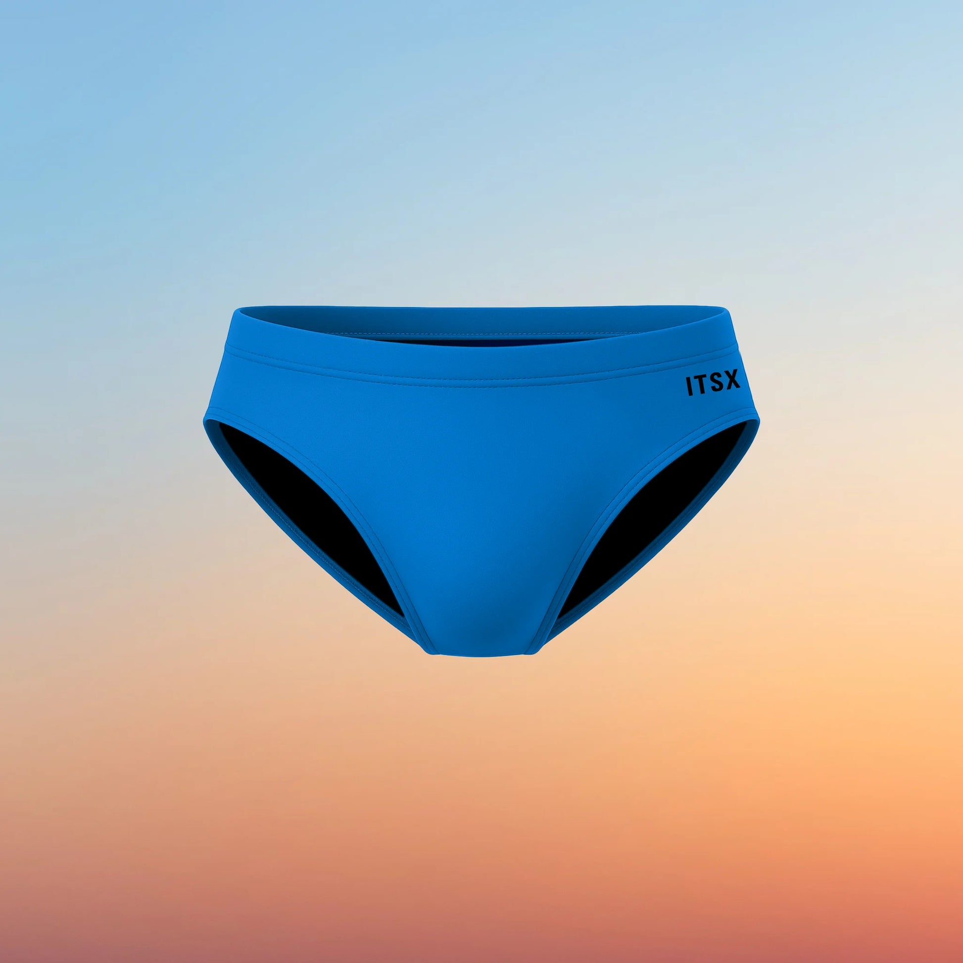 The Blue Low-Rise Sporty Swim Brief from ITSX features an 8 cm side seam and a low-rise waist for a sleek, athletic fit. It offers slightly more coverage than our Sculpt model, while still delivering sharp lines, enhanced mobility, and a modern silhouette – whether you're training hard or just turning heads poolside. Designed for speed, comfort, and movement, it keeps everything securely in place without restricting motion.